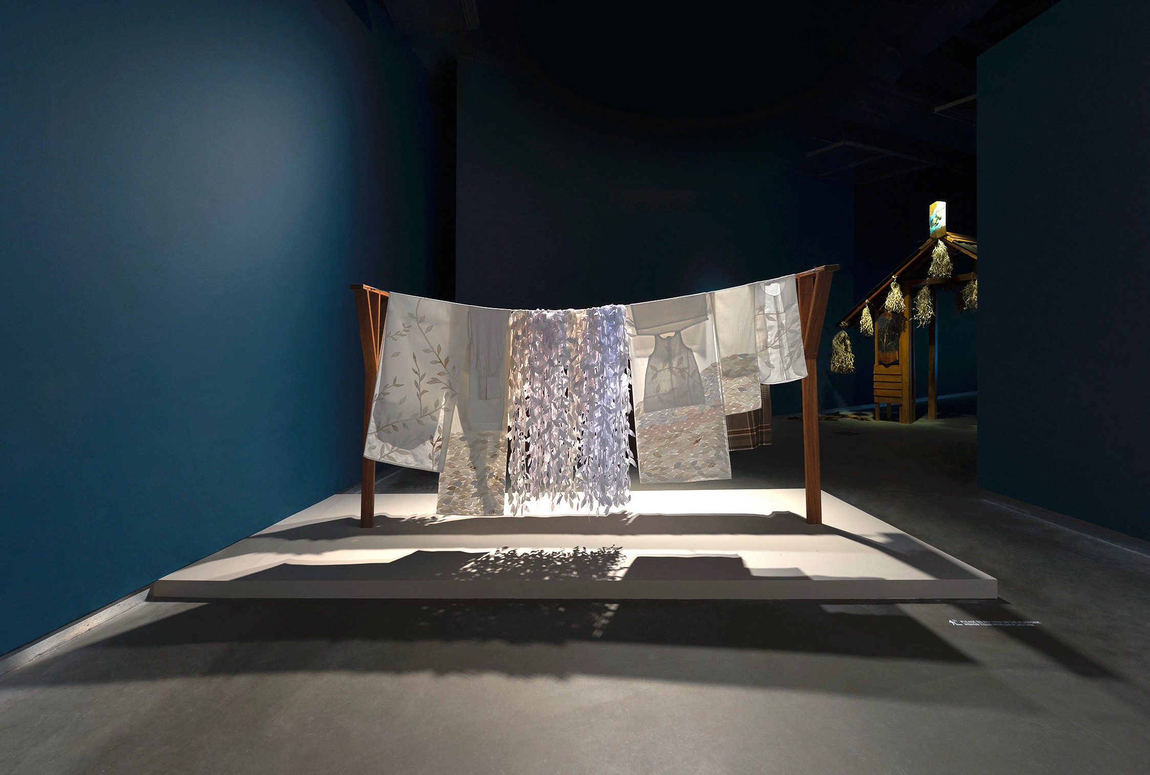 Today Is Our Day Off is conceived as an outdoor textile installation presented as a laundry line. The laundry line, a common domestic object used for drying clothes, is imagined as occupying a liminal space that oscillates between the public and private. The work was inspired by the washing lines glimpsed outside migrant workers' homes, often the only evidence of the existence of these workers.
